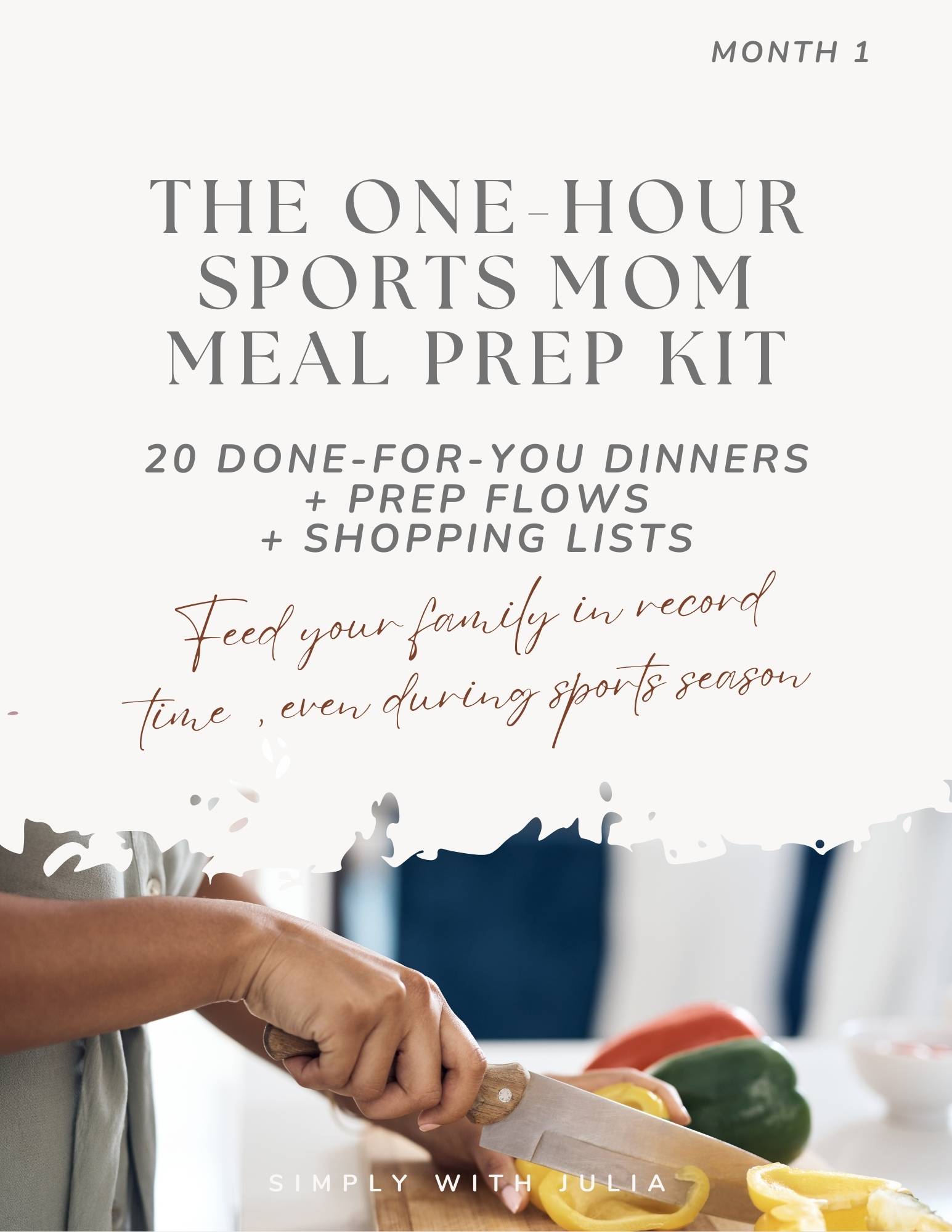 ✔ 20 Family-Friendly Recipes ✔ 1-Hour Weekly Prep Guides ✔ 30 Bonus Breakfast, Lunch & Snack Idea